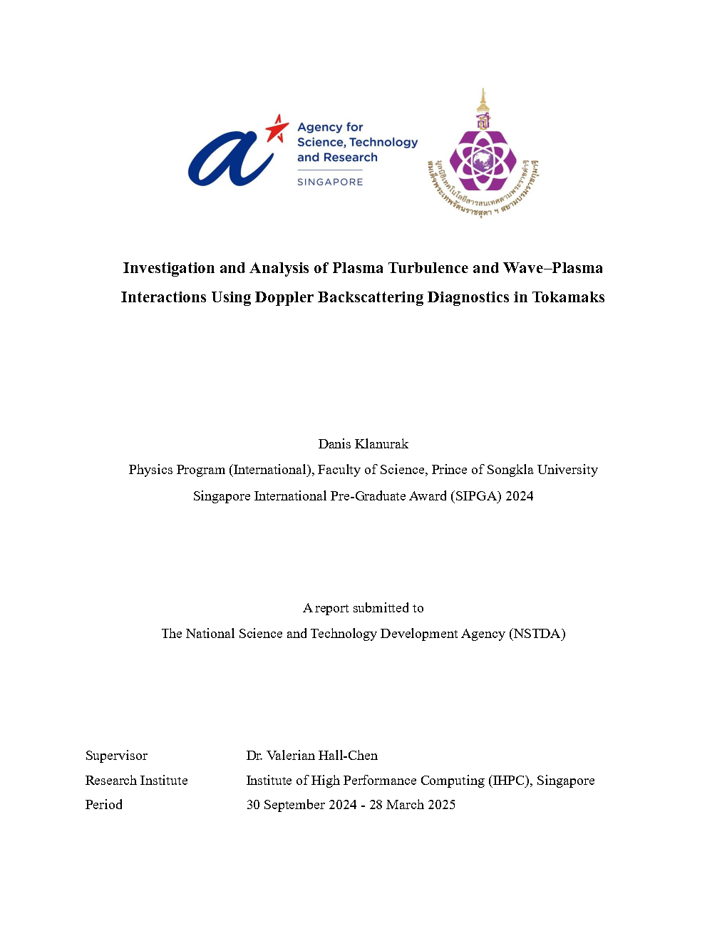 รายงานผู้ที่ได้รับทุน ASTAR 2024 – Danis Klanurak