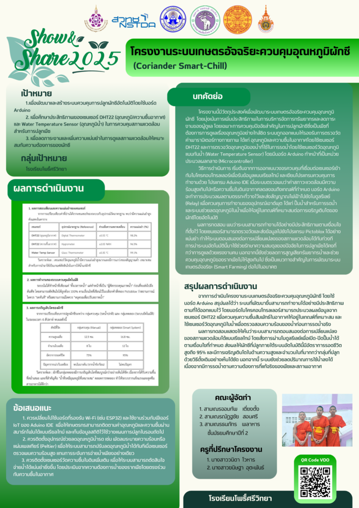 โครงงานระบบเกษตรอัจฉริยะควบคุมอุณหภูมิผักชี (Coriander Smart-Chill)