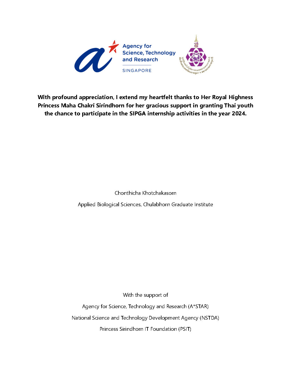 รายงานผู้ที่ได้รับทุน ASTAR 2024 – Chonthicha Khotchakasorn
