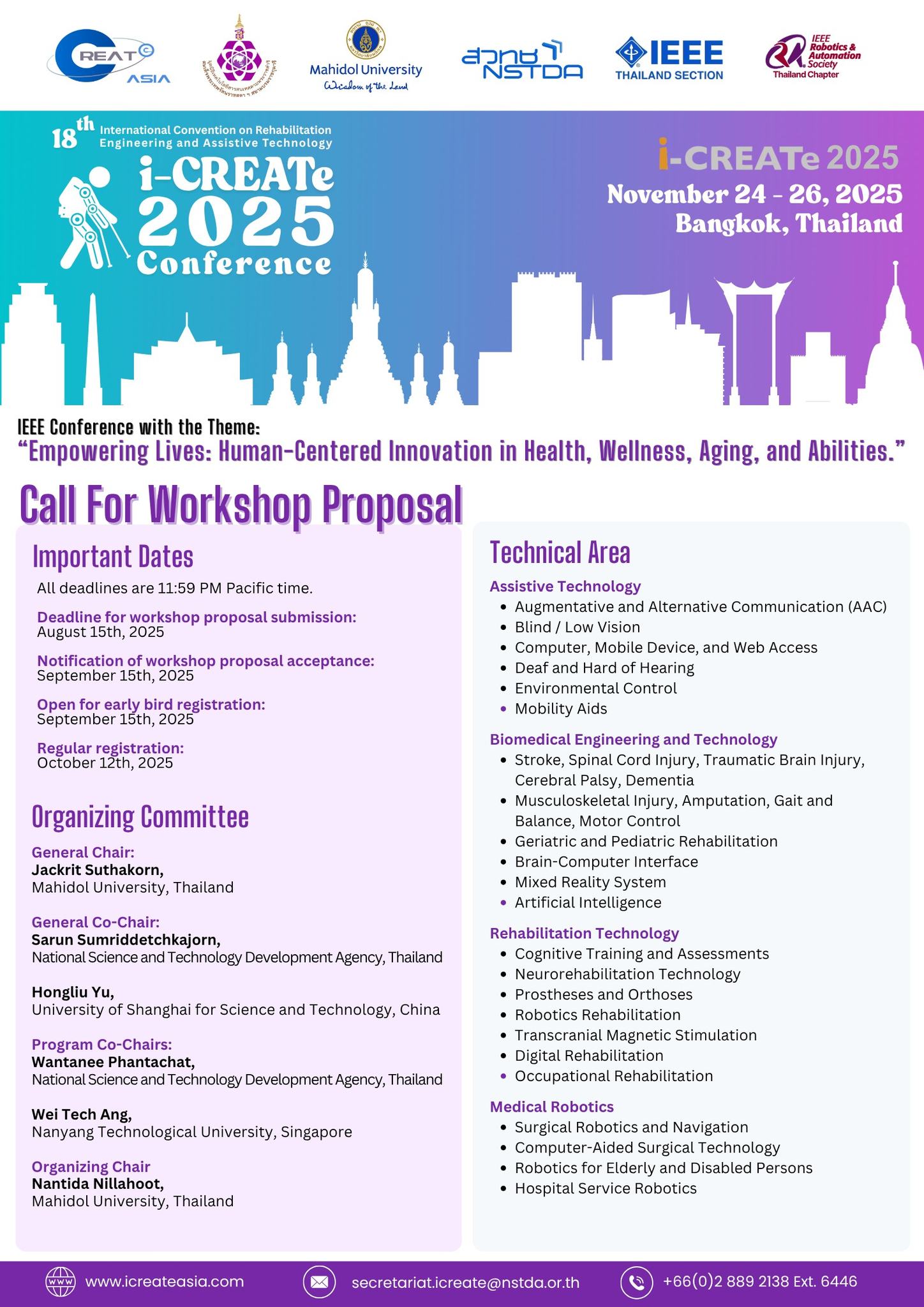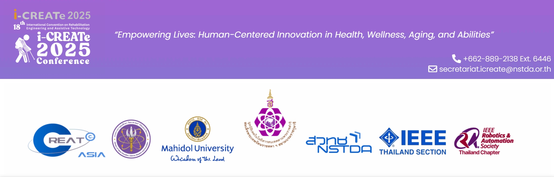 มูลนิธิเทคโนโลยีสารสนเทศตามพระราชดำริสมเด็จพระเทพรัตนราชสุดา ฯ สยามบรมราชกุมารี ร่วมกับ สำนักงานพัฒนาวิทยาศาสตร์และเทคโนโลยีแห่งชาติ (สวทช.) และ มหาวิทยาลัยมหิดล จัดแถลงข่าว ณ ห้องแถลงข่าว ชั้น 1 อาคารพระจอมเกล้า กระทรวงการอุดมศึกษา วิทยาศาสตร์ วิจัยและนวัตกรรม (อว.) ประกาศเป็นเจ้าภาพ “การประชุมวิชาการนานาชาติด้านวิศวกรรมฟื้นฟูสมรรถภาพและเทคโนโลยีสิ่งอำนวยความสะดวก ครั้งที่ 18” (The 18th International Convention on Rehabilitation Engineering and Assistive Technology) หรือ i-CREATe 2025 กำหนดจัดขึ้นระหว่างวันที่ 24-26 พฤศจิกายน 2568 ณ โรงแรม ดิ แอทธินี โฮเทลแบงค็อก โดยมีการประชุมวิชาการนานาชาติและเวทีประกวดนวัตกรรมด้านวิศวกรรมฟื้นฟูสมรรถภาพและเทคโนโลยีสิ่งอำนวยความสะดวก เพื่อส่งเสริมและสร้างสรรค์นวัตกรรมที่ช่วยพัฒนาคุณภาพชีวิตของคนพิการ ผู้สูงอายุ และผู้ที่มีภาวะพึ่งพิง (อ่านต่อ)