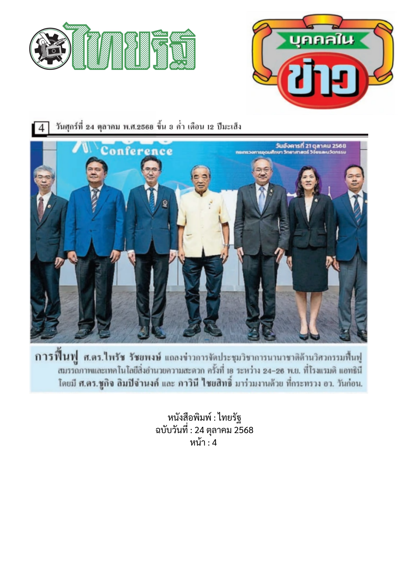 - หนังสือไทยรัฐ : หนังสือพิมพ์ : ไทยรัฐ, ฉบับวันที่ : 24 ตุลาคม 2568, หน้า : 4