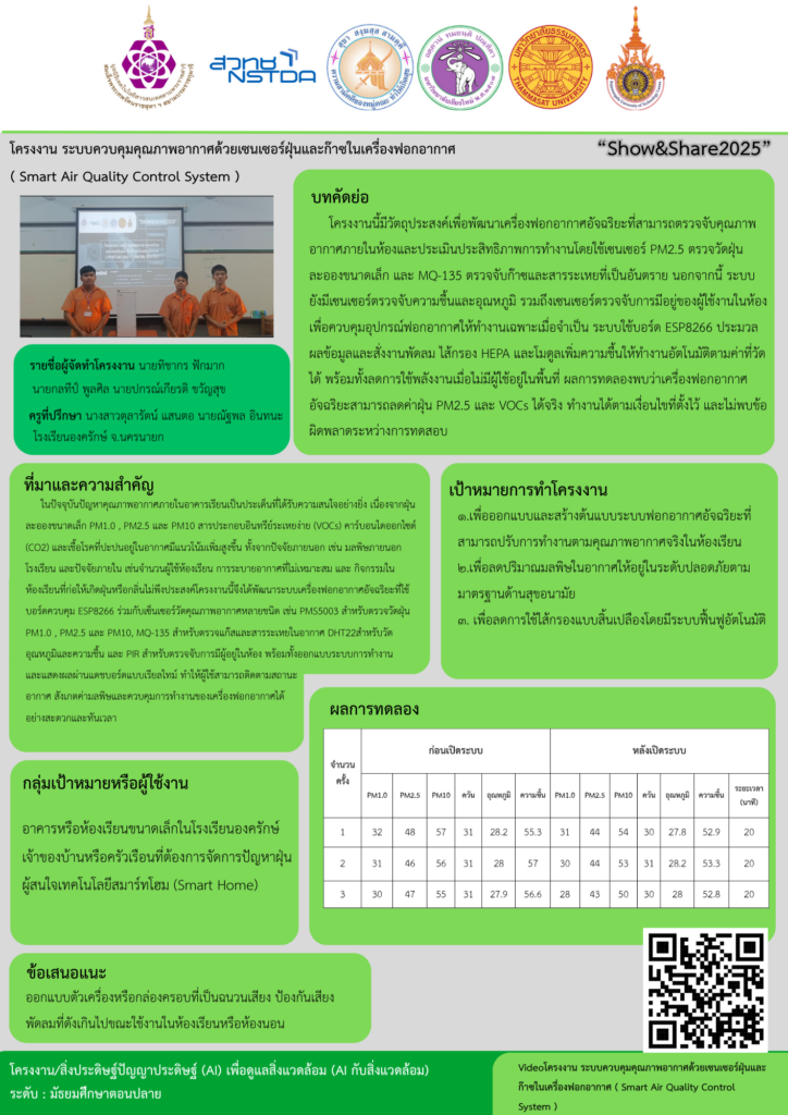โครงงานระบบควบคุมคุณภาพอากาศด้วยเซนเซอร์ฝุ่นและก๊าซในเครื่องฟอกอากาศ