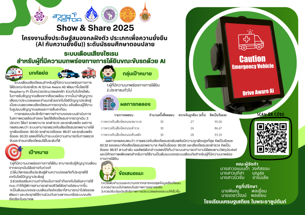 โครงงานระบบเตือนเสียงไซเรนสำหรับผู้ที่มีความบกพร่องทางการได้ยินขณะขับรถด้วย AI (Drive Aware AI)