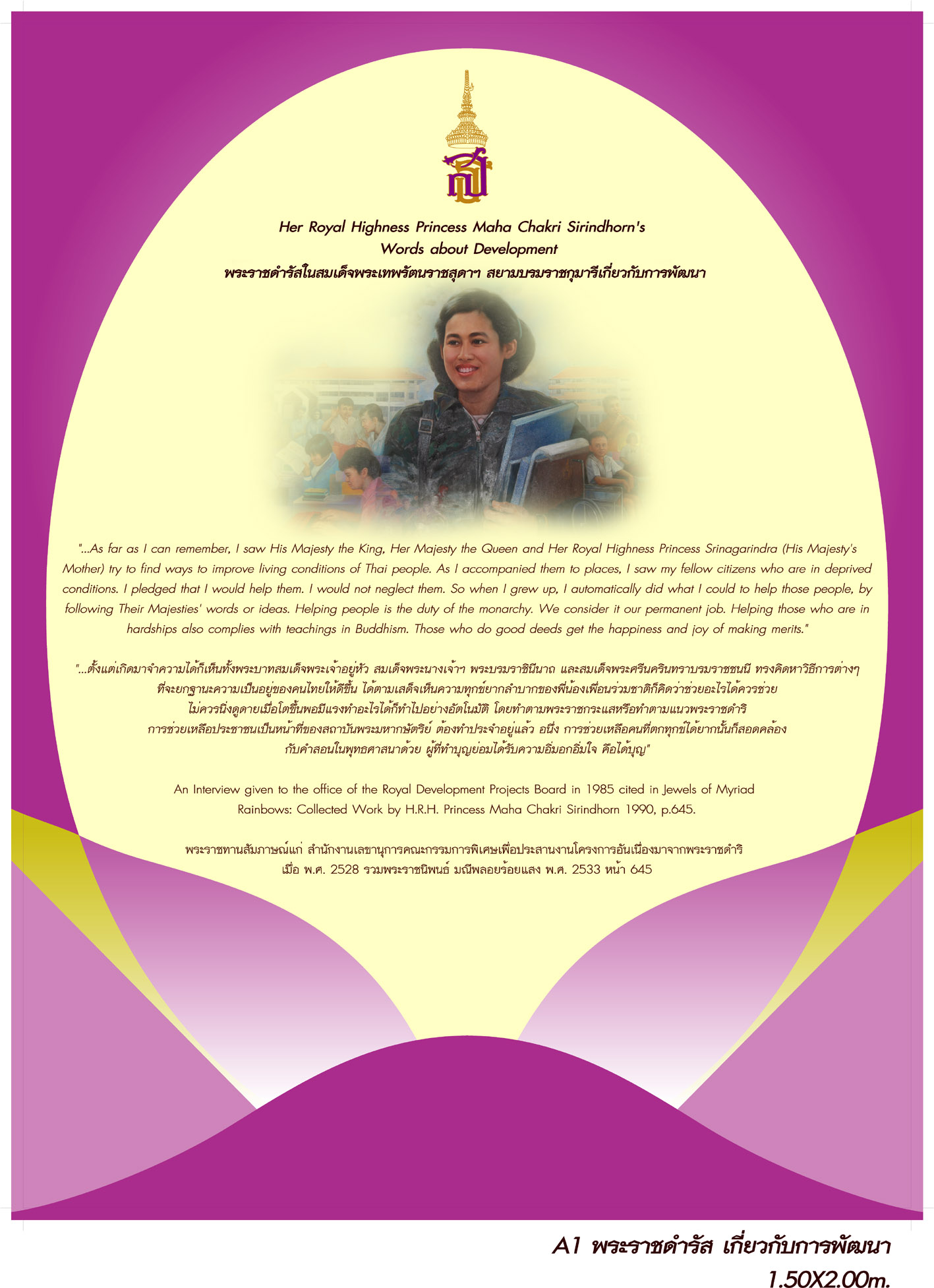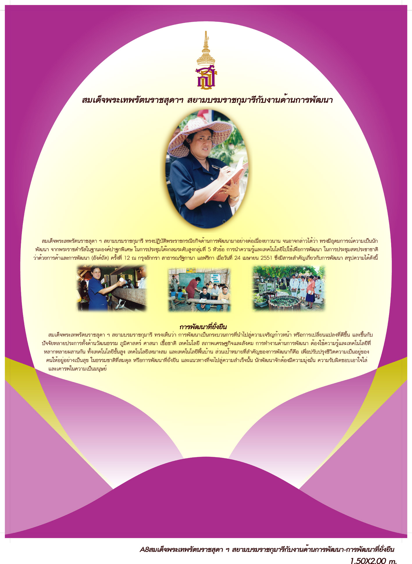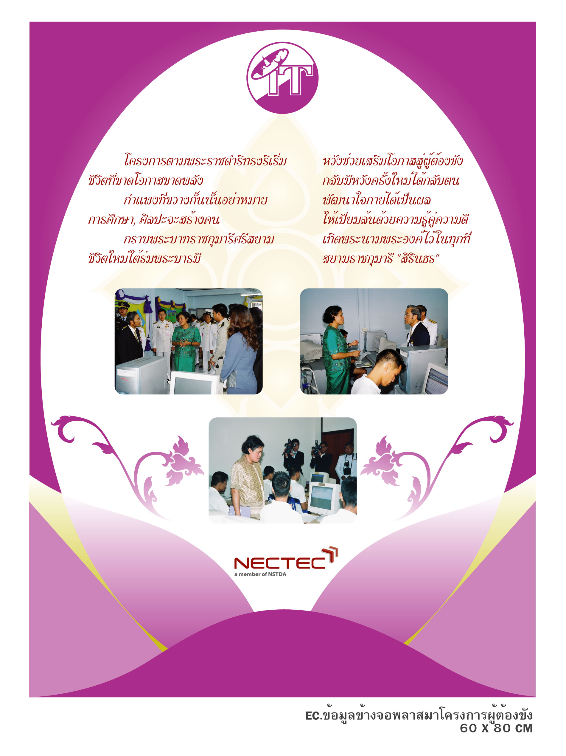 สมเด็จพระเทพรัตนราชสุดาฯ ตรัสว่า ไอซีทีมีบทบาทต่อการช่วยเหลือผู้ด้อยโอกาสทั้งด้านอาหาร การเกษตร ชลประทาน พยากรณ์อากาศ ไปจนถึงการคำนวณการให้อาหารสัตว์ พร้อมทรงยกตัวอย่างประเทศอินเดียได้ใช้เทคโนโลยีเพื่อช่วยคำนวณสูตรอาหาร ที่ให้แม่บ้านนำไปประกอบอาหารได้ถูกปากและมีคุณค่าทางโภชนาการด้วยโปรตีนถั่วเหลือง ทั้งนี้พระองค์เองได้ทรงโหลดข้อมูลทางอินเทอร์เน็ตช่วยให้ทรงทราบข้อมูลเกี่ยวกับเด็กด้อยโอกาสคล้ายๆ ในเมืองไทย