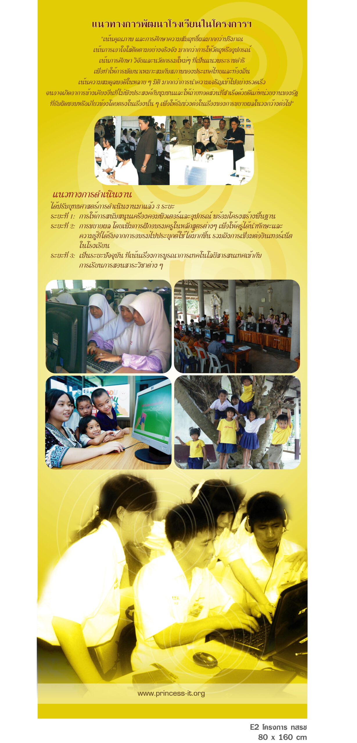 ผลงานที่จัดแสดงภายในงานเป็นผลงานภายใต้โครงการเทคโนโลยีสารสนเทศตามพระราดำริ สมเด็จพระเทพรัตนราชสุดาฯ ใน 4 กลุ่ม คือ เทคโนโลยีเพื่อการศึกษาสำหรับโรงเรียนในโครงการ ทสรช. เทคโนโลยีสารสนเทศเพื่อเด็กพิการ อาทิ เครื่องฝึกการออกเสียง โปรแกรมสอนวิทยาศาสตร์สำหรับเยาวชนผู้พิการทางสายตา เป็นต้น เทคโนโลยีสารสนเทศเพื่อผู้ต้องขัง และเทคโนโลยีเพื่อเด็กป่วยเรื้อรัง.